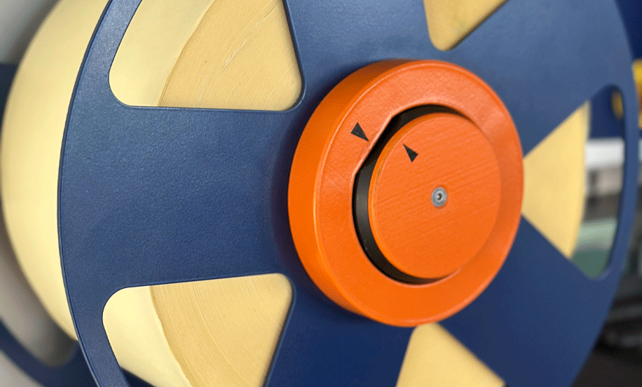 • Fácil extracción y recambio de la bobina de etiquetas Etiquetas de hasta 300mm de diámetro (350mm opcional), con un sistema simple de extracción y recambio de la bobina de etiquetas. Y un eje rebobinador del papel soporte con sistema de clip, de fácil extracción.
