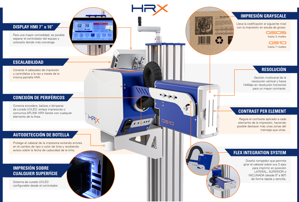 Impresoras Inkjet de Alta Resolución en Grayscale (escala de grises), diseñadas para mejorar el rendimiento de la codificación sobre superficies porosas y no porosas.
